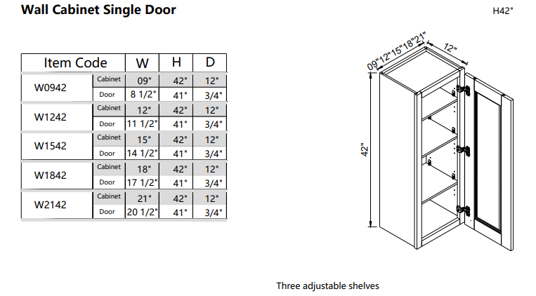 Gabinete de pared - 09" de ancho x 42" de alto x 12" de profundidad, 1 profundidad, 3 piezas