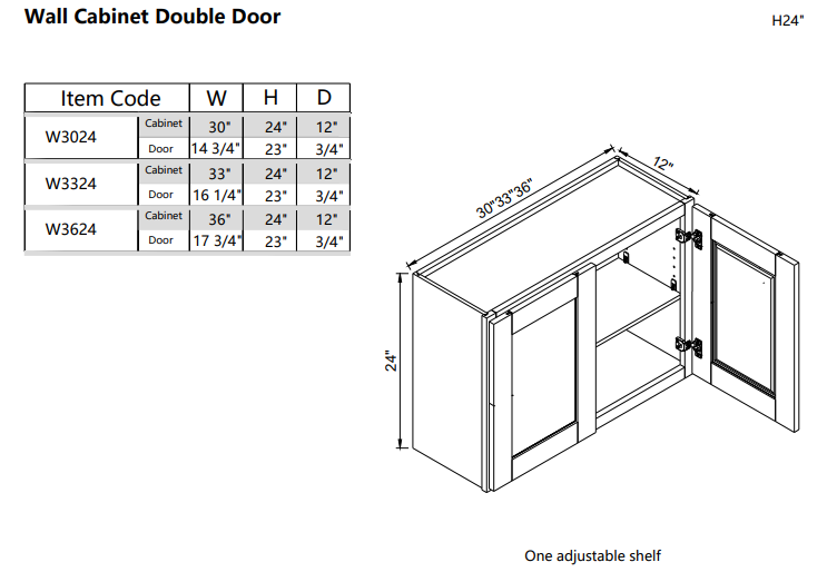 Gabinete de pared - 33" de ancho x 24" de alto x 12" de profundidad, 2 profundidades, 1 pieza