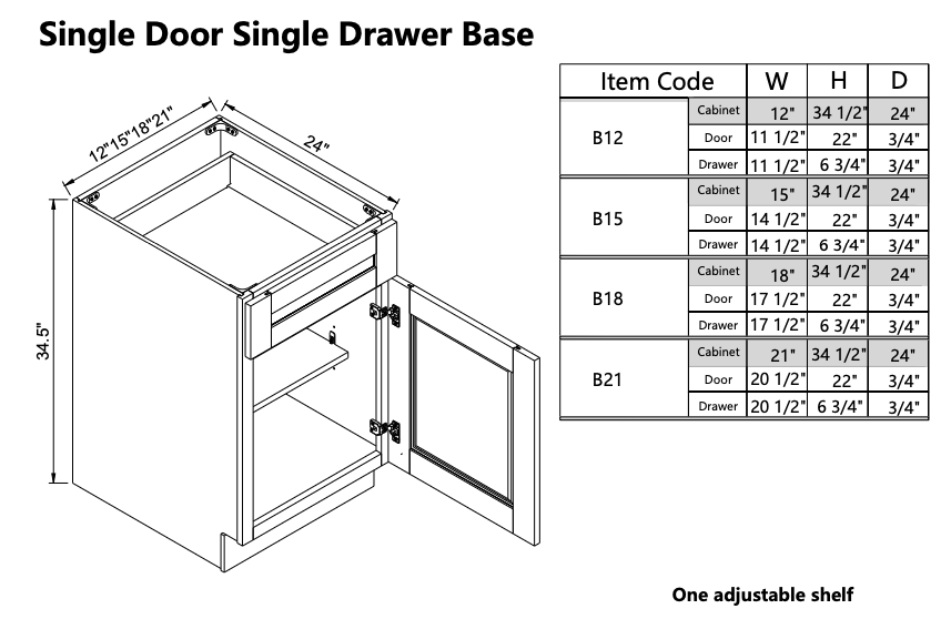 Base Cabinet - 18"W 34 1/2"H 24"D 1D, 1Drw, 1S